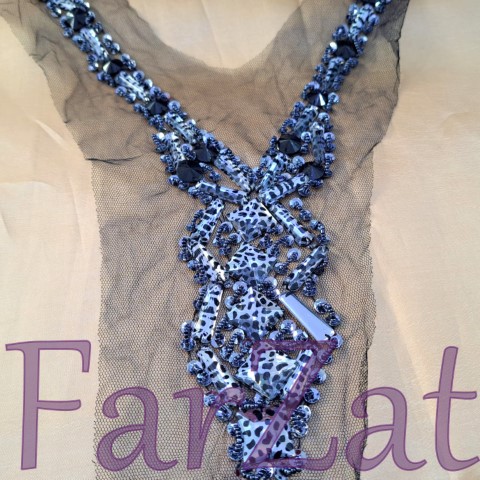 Este formata din pietre cusute, margelute si paiete, avand o lungime de 30 x 26 cm in forma de “Y”.