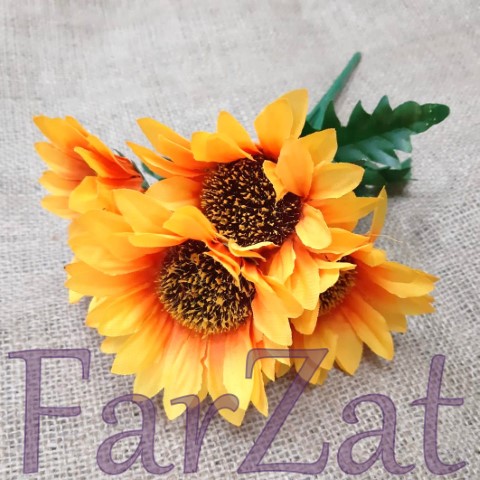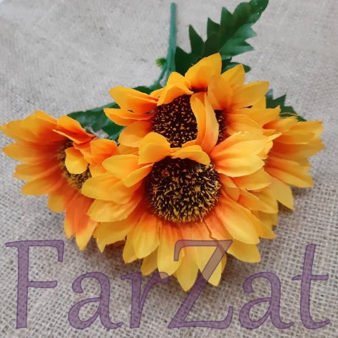 Buchet floarea soarelui realizat din material plastic si textil, ideal pentru diverse aranjamente florale interioare / exterioare.