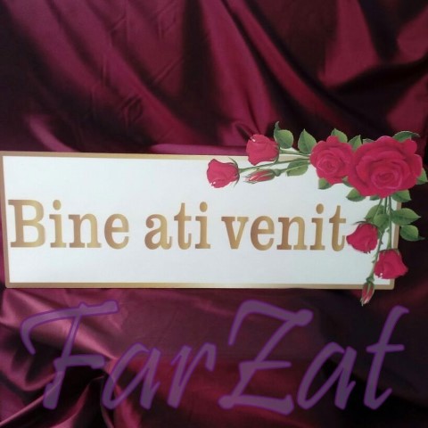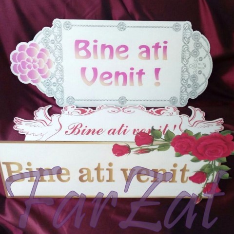Pancarte inscriptionate cu mesajul „Bine ati venit !”.