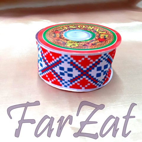 Panglica decorativa cu motive traditionale, pentru accesorizarea articolelor vestimentare (rochii, bluze, fuste, ii, palarii).