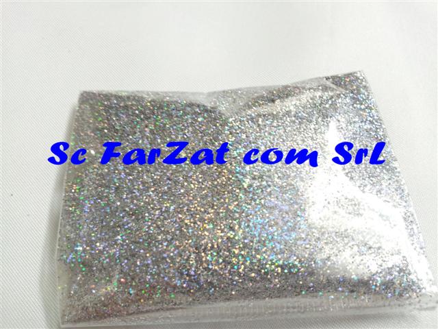 Sclipici pulbere argintiu cu reflexii aurora boreala este intrebuintat pentru decorarea diverselor obiecte, pentru haine, machiaj, in amestecul cu uleiuri sau creme pentru corp si lac de unghii, aranjamente de flori, globuri de sarbatori etc.